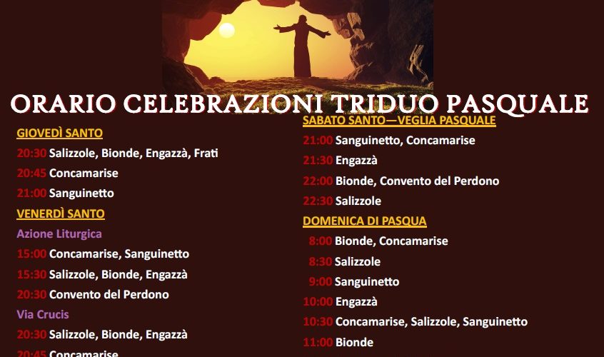 Gli orari delle celebrazioni del Triduo pasquale saranno i seguenti:
