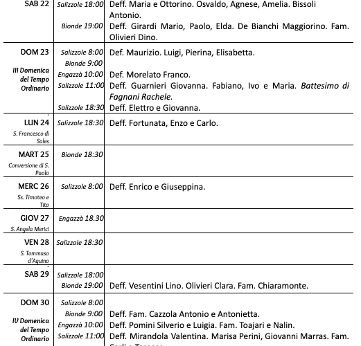 Sabato 29 gennaio alle ore 10.00 si terrà, presso il Teatro Parrocchiale di Salizzole, l’incontro di catechismo per i bambini di 4ª elementare.